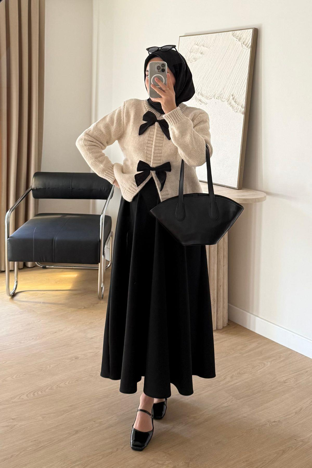 BEJ FİYONK DETAYLI TRİKO HIRKA
