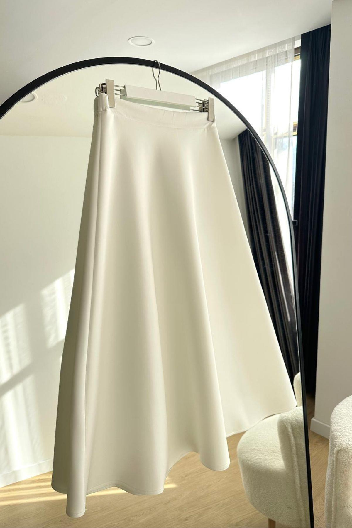 Scuba kumaştan üretilmiştir.92 cm boyundadır.Beli lastiklidir.