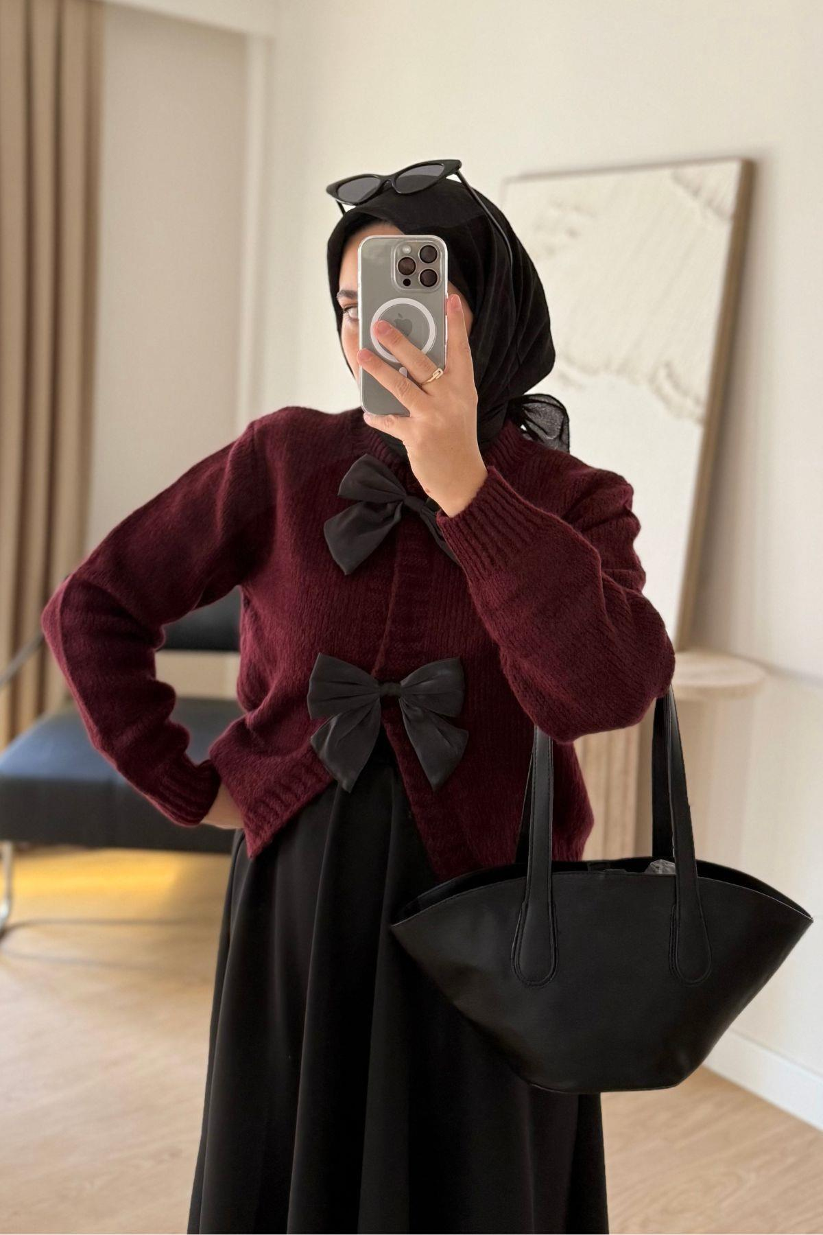 BORDO FİYONK DETAYLI TRİKO HIRKA