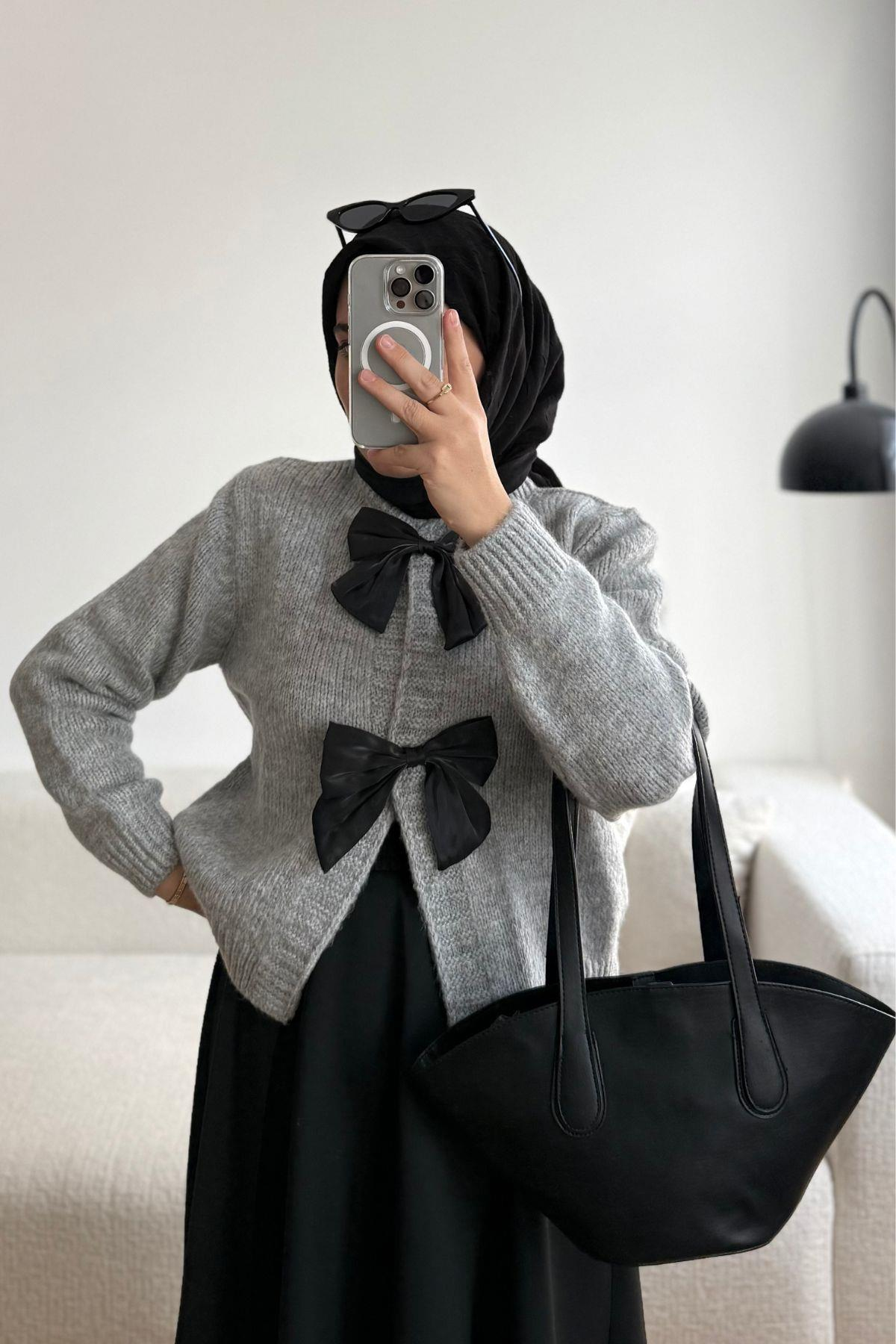 GRİ FİYONK DETAYLI TRİKO HIRKA