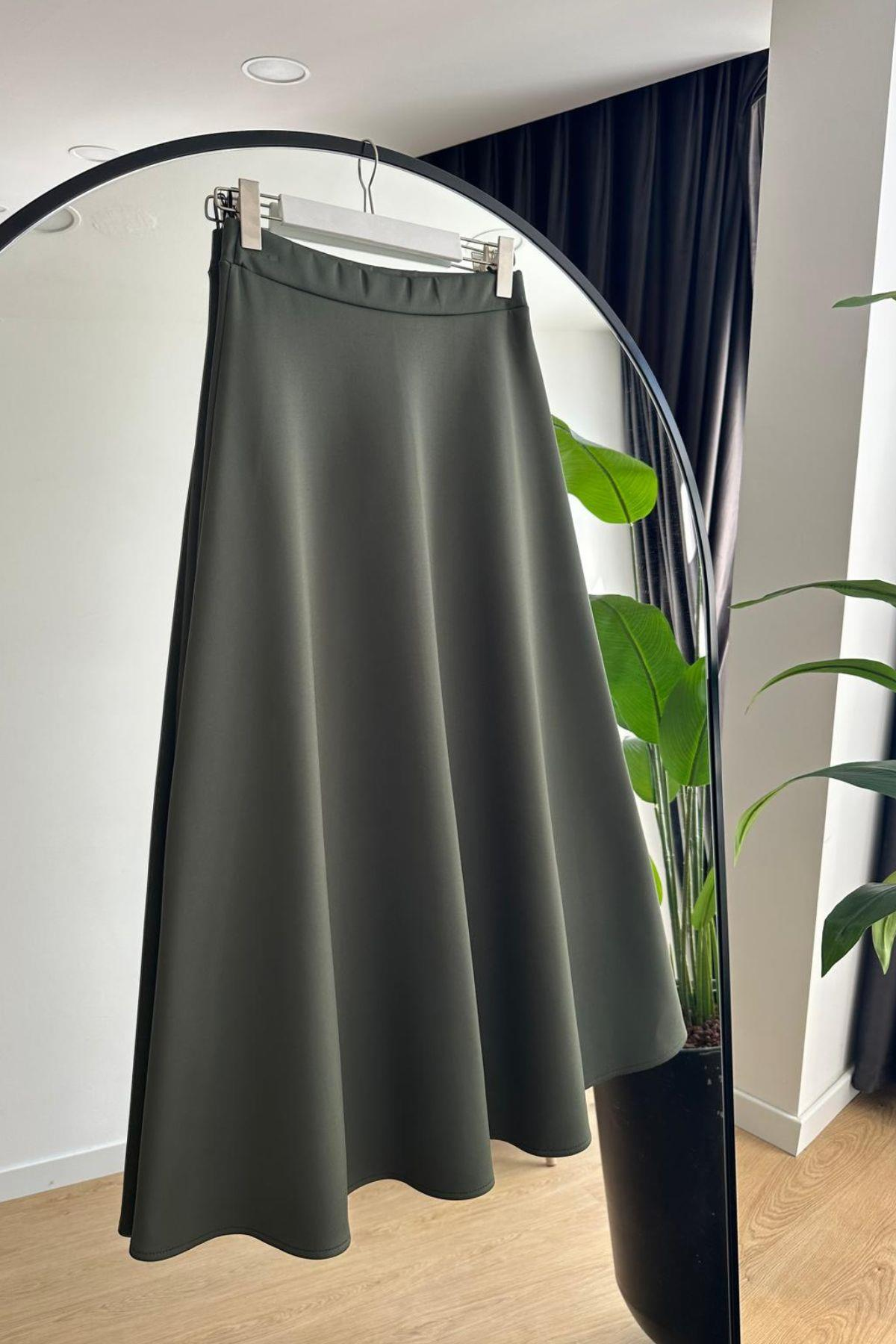 Scuba kumaştan üretilmiştir.92 cm boyundadır.Beli lastiklidir.