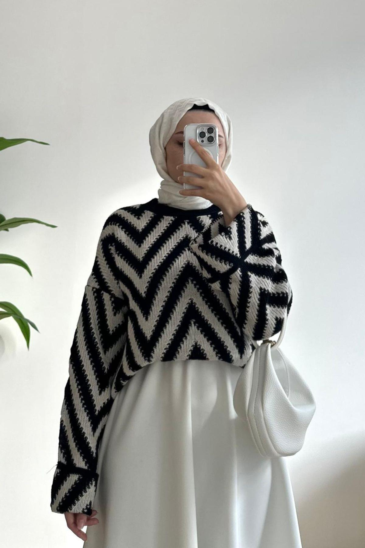 SİYAH ZİKZAKLI TRİKO KAZAK