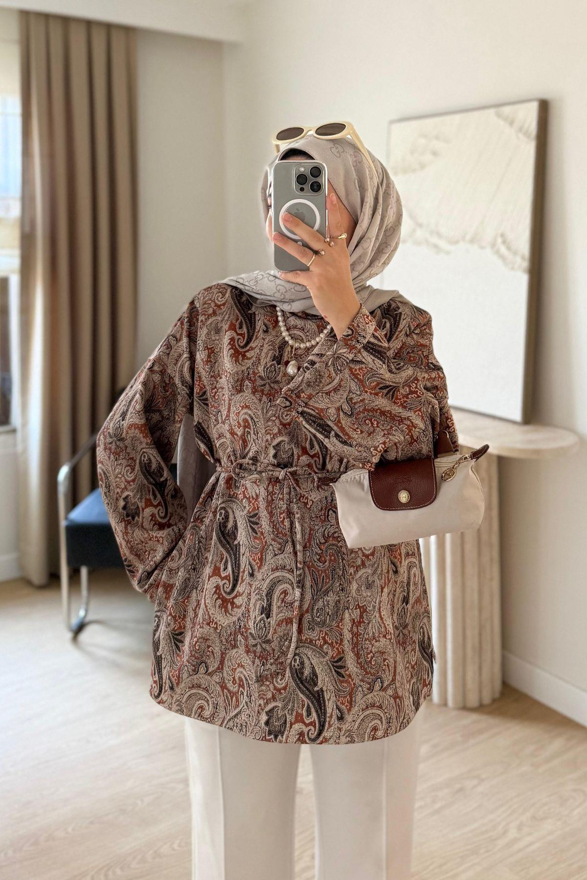 TURUNCU ETNİK DESENLİ SCUBA TUNİK